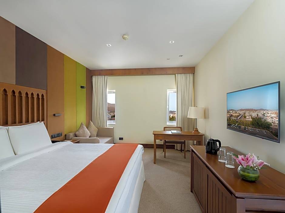 For guests looking to beat the heat or simply enjoy a relaxing swim, the hotel features an outdoor pool conveniently open all year round. Take a dip in the pool's shallow end and soak up the Omani sun. Please note that this pool is exclusively for adults, providing a peaceful oasis for guests to unwind and enjoy a refreshing swim.